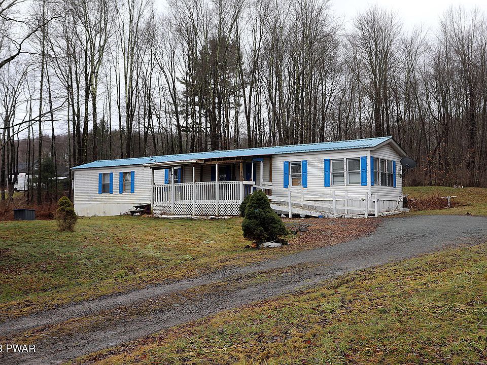 Terrific opportunity to own your own home under $100,000 in northern Wayne County. This mobile sits home on 4 acres with 2 Bedrooms and 2 full baths. Open living room to kitchen and dining area. Has its own well and septic (sand mound), and sits nicely back from the road, offering privacy. Nice mix of cleared land to garden and some woods for recreation. Covered front porch; 2 sheds. 10 minutes to Callicoon, NY and Delaware River. 25 minutes to Honesdale PA for larger stores., Beds Description: Primary1st, Baths: 2 Bath Lev 1, Eating Area: Dining Area, Beds Description: 2+Bed1st
