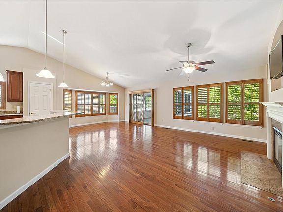 WHAT'S not to LOVE? DETACHED villa only 16 yrs old w/brick façade featuring stone accents & beautiful etched glass front door w/side lights. VAULTED & OPEN floor plan w/WOOD FLOORS thru-out main floor living areas. Kitchen features upgraded cabinets, GRANITE counters, black appliances & breakfast bar. ** PLANTATION SHUTTERS have been installed thru-out ** Gas FP surrounded by built-in open shelving in great room. VAULTED master suite offers LVP flooring (no carpet on main floor!), ceiling fan, LARGE walk-in closet along w/double-bowl vanity & WALK-IN shower featuring EIGHT shower heads & seat! Second bedroom (or office) w/guest bath featuring ceramic tile & TRANSOM window. Sliding glass door off dining area to vaulted SUNROOM addition w/ceiling fan. Finished WALK-OUT LL offers rec area w/recessed lighting, bedroom & full bath. MAIN FLOOR laundry, 1 year old HVAC, new sump pump & invisible fence. Just POWER-WASHED & new front walkway to be installed! Priced well BELOW appraised value! Additional Rooms: Sun Room Location: Detached