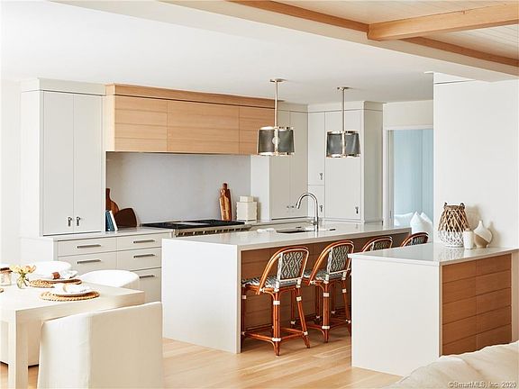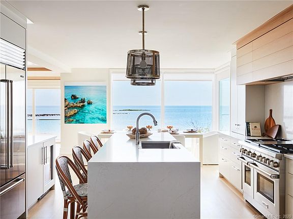 100% Complete, Move in this Fall! Live & Work as you enjoy gazing out at the beach and soaking in the water views. Magnificent,new 3,134 SF beachfront gem by Bluewater Home Builders at Westport's Compo Beach is beyond special! This transitional style home with stunning Long Island Sound views is finished on 3 levels & incorporates cutting edge architectural features,extensive millwork &wonderful space. The inviting Great Room with white oak flooring, shiplap ceiling, & gas fireplace is welcoming to all.The open floor plan incorporates a large Dining Area & Eat-in Kitchen w/floor to ceiling windows with beach & water views, high-end appliances, & stunning stone slab countertops. Convenient Office/study with pocket doors allows for privacy when needed or potential 5th Bedroom.Full Bathroom, Mudroom, Laundry Room, & entrance to back yard complete the 1st flr. The 2nd flr Master Suite with panoramic views, dual custom closets, & designer Bathroom with radiant floor heat & steam shower is warm & relaxing. An additional En-suite Bedroom with floor to ceiling windows & 2 Family Bedrooms with Jack & Jill Bath finish the 2nd flr. The 3rd flr offers a bonus space perfect for a Studio, Office or Playroom - complete with Half Bath, wet bar, & covered balcony. Be mesmerized & the envy of all the neighbors from the fabulous Roof Top Deck with gas fireplace,hot tub & spacious entertaining area w/direct views and magical sunsets. Available fully furnished for an additional $30,000.