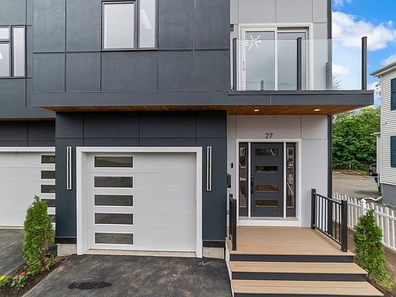 Welcome home to this contemporary townhouse in the heart of Medford. Everything is custom designed from the exterior streamlined siding, glass balconies, and modern lighting to the inviting entryway with warm cherry floors, seamless modern stair risers, and accent lighting, this house is the ultimate in modern living! First floor features lush cherry hardwood floors, open designed kitchen, living and dining room. Custom kitchen has walk-in pantry, Bertazzoni 5 burner gas stove, custom-designed cabinets, and waterfall granite island with built-in sink. Second floor offers 3 bedrooms and the first master bedroom with soaring ceilings, skylights, master bathroom with double vanity and laundry. The second master bedroom is on the third floor with incredible space, walk-in closet, double vanity, custom shower and balcony to enjoy and relax with a cup of coffee or wind down at the end of the day. Truly a spectacular home.One car garage, yard space, built-in speakers and much more!