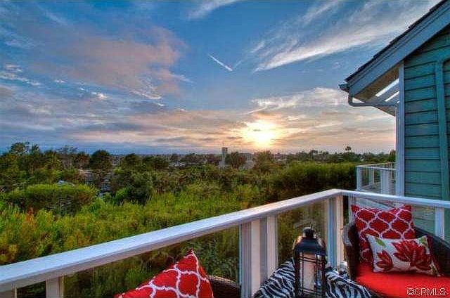 Enter the property through a lovely courtyard ablaze with colorful flowering pots. Located in the private, gated community of Belcourt Hill in Newport Beach, this Catalina and city lights view condominium is light and bright with 2 Bedrooms, 2.5 Baths, spacious Living Room with vaulted ceilings and skylights, separate Dining Room, Library and sunset view balcony off the Living Room. The Kitchen has been upgraded with granite counters, freestanding gas range and oven, stainless appliances, breakfast area and slate floor. Slate floors in Entry and Library. Downstairs is the Main Bedroom with a fireplace and sitting area, elegant main bath with Carrera marble wainscoating and floors, huge walk-in closet, two French vanities, tub and separate shower. A balcony stretches across the entire back of the unit with entrances from both bedrooms. The Guest Bedroom has an adjoining bath with black granite and Carrera marble flooring, tub with a shower. Belcourt Hill association has a large pool with separate spa and lush landscaping. Entertain by the pool in the outdoor garden area. There is park at the corner of Jamboree and Ford Road. This gated community consists of 50 condominiums located near Fashion Island, Balboa Island, Back Bay, freeways and the airport.