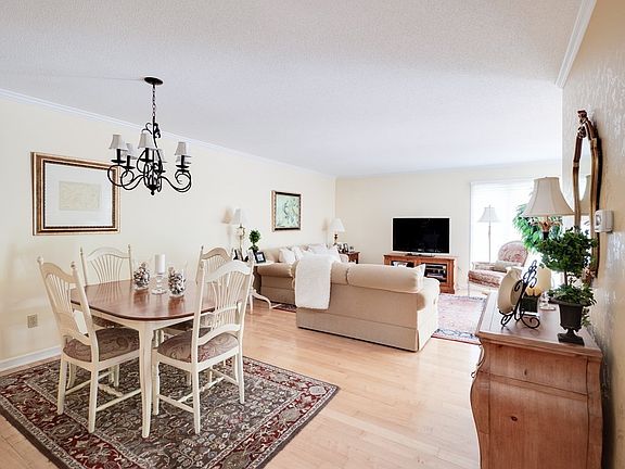 This is easy living at its finest! Immaculate home with 5 rooms, 2 bedrooms and 1 1/2 baths. The two bedrooms have an adjoining full bath that has been updated. First floor has large kitchen with granite counters, stainless appliances including a stainless hood over the range and tile flooring. Living room and dining room have hardwood flooring, wood fireplace and sliders to a composite deck overlooking a private back yard! Finished basement has a family room and an office or workout space. Half bath on the first floor with pedestal sink. One car garage has a garage door opener and cabinets for storage. Amenities include a built in pool, very close proximity to the bike trail and the Congamond Lakes! This is a must see unit! Showings start at the open house on Saturday 7/16 from 12-2pm! Stove & dishwasher (2020), stainless steel range hood (2021), basement and stair carpet replaced in 2022 and water heater (2022). Central air and gas furnace replaced in 2014.Electric heat in basement