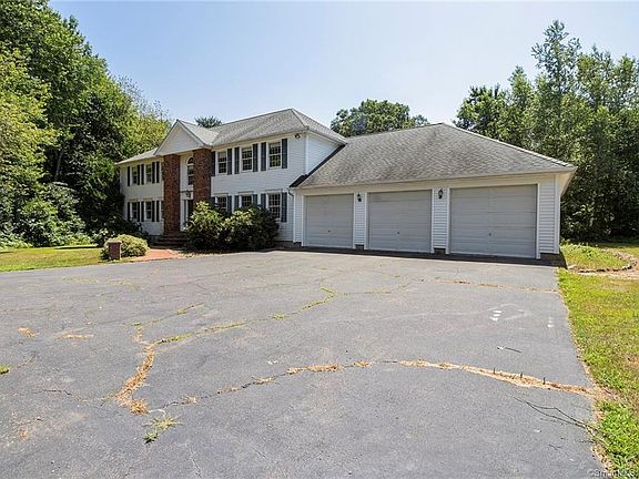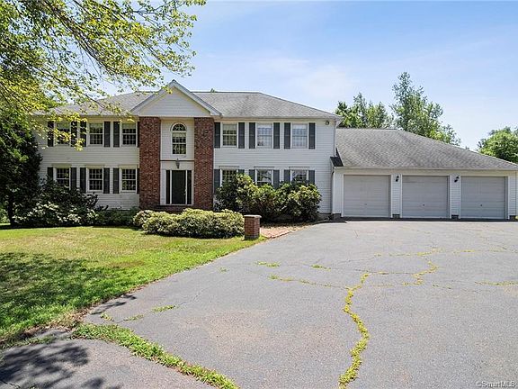 Spencer Brook Farms. Where else are you going to find a 5 Bedroom, 10 room Colonial with 3 full baths, newer custom kitchen with Granite, Stainless appliances on 2.63 private acres for less than $400K in Connecticut that is only 29 years young? Formal Living, Dining rooms. Beautiful Custom built hickory kitchen cabinets with granite counters and island. Stainless appliances including trash compactor. Washer and dryer included located on main floor. Master Suite with a walk-in closet and additional closet with full bath and steam shower. Hardwood flooring, carpet and tile. Open Eat-In- Kitchen to Family room with fireplace. New Central Air. First floor guest bedroom with access to a full bath perfect for In-law,Au Pair, or Study. Also, every man's dream, a HUGE 3 car garage with walk-up 2nd floor storage area. Additional attic in Master with a pull down staircase. Full Basement with a walk-out door. Newly built upper chimney. 13.5 x 23 finished room in lower level. Roof is 10 years young. 45 x 18 Trex Decking. New Hot Water heater!. HVAC cleaned and serviced August 2019. Just add your personal touches and move right in. 5 miles to shopping and restaurants. 8 miles to The Shoppes at Farmington Valley. 35 minutes to Bradley International Airport. 15 minutes to Rte 8. Floor plans with measurements included in photos. Eligible for USDA financing. Atmospheric Radon is at levels well below the accepted threshold. A Water purification system to be installed that will deal with radon by Jeff Sheridan. Septic inspection was fine and it will be pumped which was the only requirement from the septic test. Well flow and pressure were fine. Price reflects the obvious updates and repair/replacements for areas inside and out needed in the house. House will be sold "as is" along with items listed in remarks.