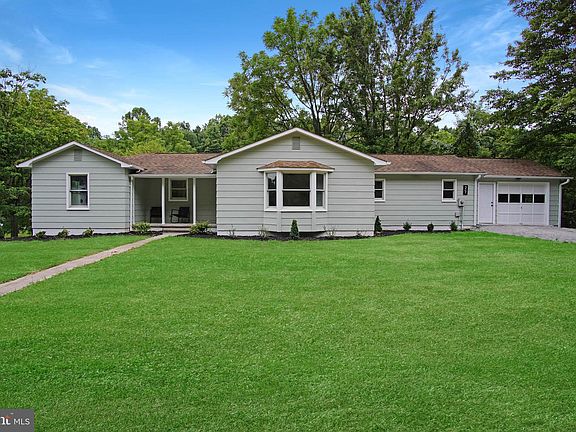Back on Market - No Fault of House - Here is your opportunity to own this Beautifully remodeled 3 bedroom, 3 Full bath, contemporary ranch style home in rural Hedgesville, WV! This home is very nicely situated on 2.5 acres, and is bordered by woods and lots of wildlife making it perfect for the nature lover! Just inside the front door is the first of two living areas featuring modern LVP flooring that continues and flows seamlessly through the entire main level. Beyond this is a spacious open floor plan combining the kitchen, great room and dining room with dual glass doors opening to the covered porch area overlooking the wooded back yard. The entire home has lots of windows and doors creating a bright home filled with loads of natural light and views of outdoors. The lighting and fixtures have all been updated with a contemporary look. The updated kitchen features new white shaker cabinets, backsplash, stainless steel appliances with striking quartz countertops and a matching Island. Conveniently located next to the kitchen is the spacious laundry room with brand new washer and dryer and additional cabinetry matching the kitchen. One of 3 full bathrooms is conveniently located off the kitchen and laundry areas. And, next to the kitchen area, is easy access to the main level garage. Back the hallway you will find the generously sized primary bedroom with a beautiful ensuite updated with marble top vanity and tiled walk-in shower featuring a decorative bottle alcove. There are Two additional bedrooms each with nice sized closets. The hall bathroom features double bowl vanity, tub/shower combo and linen closet for extra storage. The home was just upgraded with a brand new York brand heat pump which will offer year round comfortable heat and A/C service. New water heater just installed. The unfinished lower level of the home is full-sized, walk out with glass doors opening up to a sitting patio area and a great view. There is a second garage, in the basement, under the home. It doesn't get much better this! Beautifully remodeled home with keen attention to detail. Plenty of space to make this home yours! Don't wait - Call for your showing today!