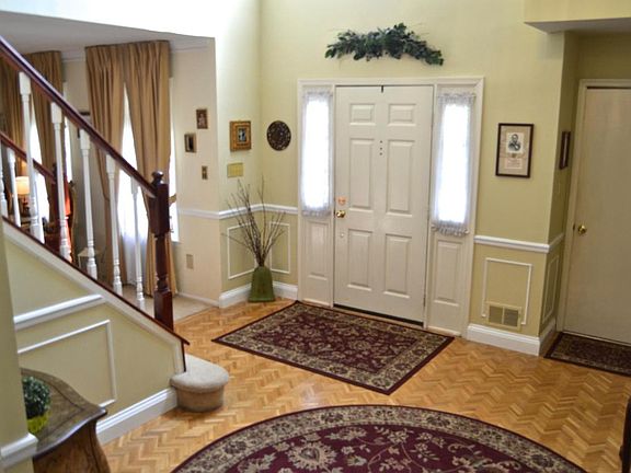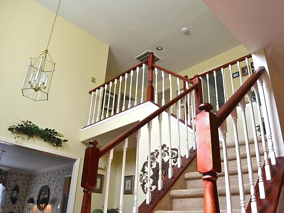 AFFORDABLE FOUR BEDROOM CENTER HALL COLONIAL WITH FINISHED BASEMENT. SIT ON YOUR COZY FRONT PORCH WITH FRIENDS. WHEN YOU ENTER INTO THE TWO STORY FOYER YOU CAN'T HELP BUT NOTICE THE LARGE FORMAL DINING ROOM TO ACCOMMODATE YOUR FAMILY GATHERINGS. THE EAT IN KITCHEN OFFERS A FIVE BURNER STOVE AND STAINLESS STEEL APPLIANCES. STEP DOWN TO FR WITH WOOD BURNING FIREPLACE. WALK OUT THRU SLIDING DOORS TO WOOD DECK WITH ENCLOSED GAZEBO. PRIVATE WOODED YARD WITH BEAUTIFUL PERENNIALS. MASTER BATH WITH SHOWER AND WHIRLPOOL TUB. FINISHED BASEMENT FOR KIDS TO PLAY. MANY UPGRADES THROUGHOUT. JOIN THE COMMUNITY POOL WITH TENNIS COURTS AND BASKETBALL.