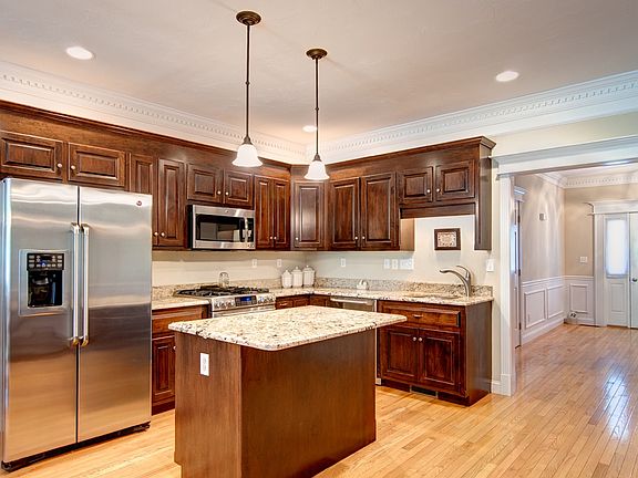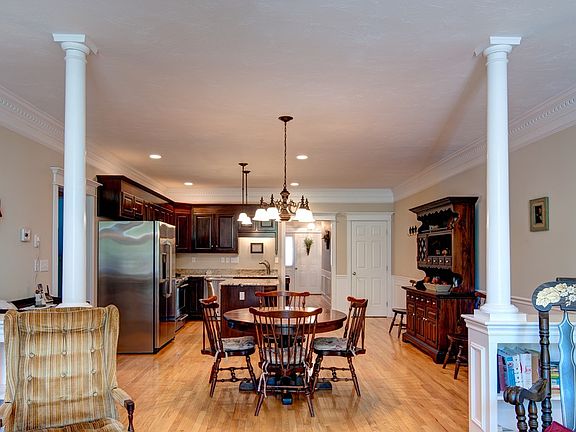 This beautiful single-level end unit 55+ condo, with a bright, open-concept living area is perfect for down-sizers. The living room features custom crown molding, propane fireplace and sliding door access to the back deck. Kitchen includes custom cabinets, center island, granite countertops, and stainless steel appliances. Both bedrooms and bathrooms are located on the same level for easy movement throughout the space. Two car garage makes access simple and easy, even in inclement weather.
