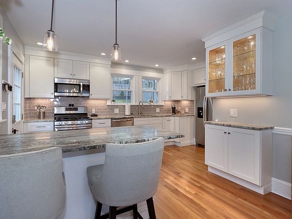 Classic center entrance garrison colonial, situated on a quiet dead-end street. Completely renovated in 2018 that highlights quality craftsmanship, modern updates, that compliments the colonial charm! All new plumbing, heating, electric + Central Air. Recessed lighting + hardwood floors throughout. 1st floor offers a spacious front to back living room with wood burning fireplace and custom built in cabinetry, office with new 1/2 bath, open kitchen/dining area with granite countertops + peninsula, SS appliances, white cabinetry and easy access to exterior which offers a huge deck, fully enclosed nice size yard, patio and new shed. 2nd floor has front to back primary bedroom + walk in closet, 2 additional good size bedrooms, beautifully updated full bath w/ radiant floors + 2nd floor laundry. Amazing(2020) finished lower level with designer bath with walk-in tiled shower and radiant floors, custom-built wet bar w/recessed wine fridge! Fabulous home for entertaining!
