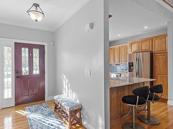 Newly renovated condo in highly sought after Cogswell Farm Atkinson! Beautiful 2 bed colonial style with first and second floor custom en suites that can't be beat! Gleaming hardwood floors throughout the first floor living space, granite countertops, newer stainless steel appliances, wine fridge, over-sized windows, propane fireplace insert and first floor laundry are just the beginning of highlights. Upstairs you find a custom walk-in closet, office space overlooking the first floor and a dream custom shower in the ensuite bath! Beautiful deck, walk-out basement, an oversized two-car garage and plenty of room for storage make this the perfect place to call home!