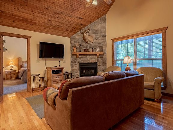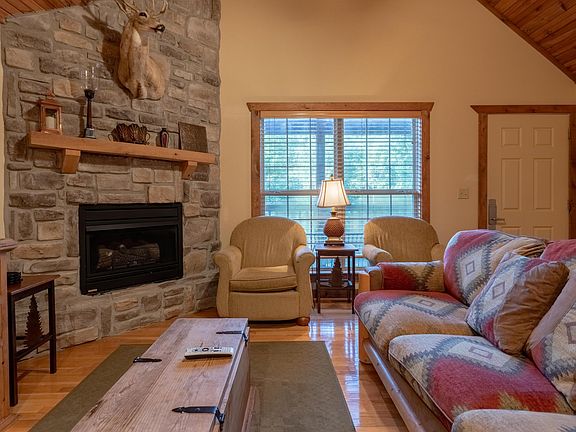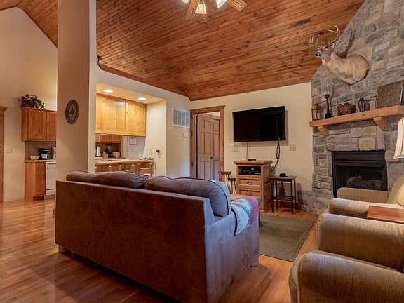Own your own piece of the beautiful Ozarks with this 2B/2B lodge located in the premier gated community of Stonebridge! Sit on the screened porch with your morning coffee and enjoy the quite serenity. Cozy up on the sofa in front of the stone fireplace and enjoy a movie on those cool fall nights. It would make a great investment as a nightly vacation rental and it comes turn-key and ready to rent! This would afford you a wonderful getaway place and still generate income. The lodge features soaring ceilings, wood floors and is nightly rental ready. This unique unit has its own drive which allows you go drive right to the rear entrance where you'll only have 2 steps! The Dual Run Capacitor, Run Capacitor and Contactor were recently replaced on the HVAC, gutters were installed, metal soffits installed in 2019 and new insulation was injected in the crawl space in 2021. There's plenty to do right there in Stonebridge including pools, clubhouse, tennis, catch & release pond and more. Play a round of golf and then enjoy a delicious meal at Ledgestone Grille. When you're ready to venture out, Silver Dollar City is right down the road for those thrill seekers. Indian Point Marina is also near by for lots of Table Rock Lake fun and Branson is only 10 minutes away for all the shopping, entertainment and dining you could ask for.