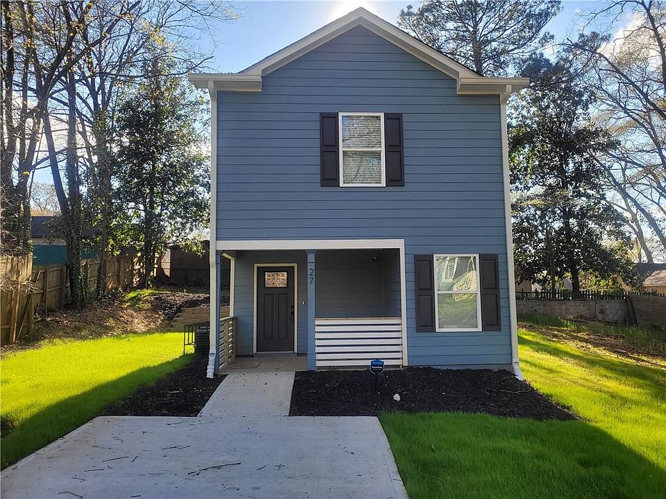 This gorgeous new construction home in popular Lakewood Heights awaits its lucky new owners. From its curb appeal to its attractive interior finishes, this home is a must see! Imagine lounging or rocking on its covered front porch while admiring the luscious green sodded front lawn. At the entry is the perfect living space for catch up conversations with friends and family. Tucked away in a private corner is a cozy nook for a home office or quiet reading space. Entertainers would love its open layout. With a direct view into the family room, the beautiful kitchen features white soft-close cabinetry, quartz countertops, a huge dine-around island, stainless steel appliances and a premium herringbone backsplash. The spacious main level features a convenient powder room and resilient LPV flooring throughout. The three spacious bedrooms are all on the upper level, including an impressive owner’s suite with dual closets. The owner’s bathroom features a frameless glass shower, marble floors with matching marble shower wall tile, quartz countertops, dual vanities with soft-close drawers and doors, and beautiful light fixtures. Centrally located near Lakewood Amphitheatre, EUE/Screen Gems Studios, Tyler Perry Studios, Hartsfield-Jackson International Airport, downtown Atlanta, shopping, dining and highways.