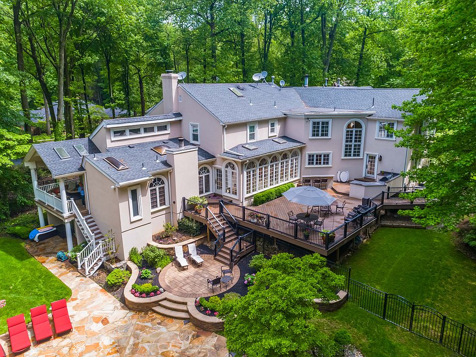 Secluded Elegance...Exquisite 6 bed.8 bath 6,300 sq.ft. Modernized Colonial sits on 1.2 acres of pristine, custom landscaping for those who desire privacy. An entertainer's dream w/unique features both inside & outdoors. Perfect home for a multi-generational family. Luxurious interior incl. Connoisseur's Kitchen, magnificent Great Room w/wood burning stone fireplace & custom built wet bar leading to a serene covered patio overlooking treed background. French Door entry into 2,000 sq ft Master Bedroom Retreat complete w/ sitting room, double sided gas fireplace & office. ''His'' & ''Hers'' master baths. ''Hers'' includes dressing room, walk-in closet & custom bath w/2 person whirlpool, shower & heated floors. ''His'' offers masculine granite bath w/steam shower, wet bar & walk-in closet.