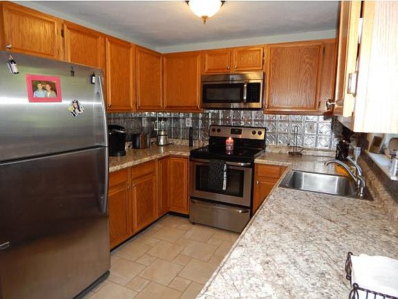 Won't last gorgeous 2 or3 bedroom 1.5 bath town house features large living room open to eat in kitchen with new appliances and sliders to private deck. Second floor boasts all new wood floors in 2 lg bedrooms and stairs. 3rd floor has extra large great room or possible master with skylights Don't miss the finished lower level family room with sliders to back yard to round off this wonderful home on secluded circle.