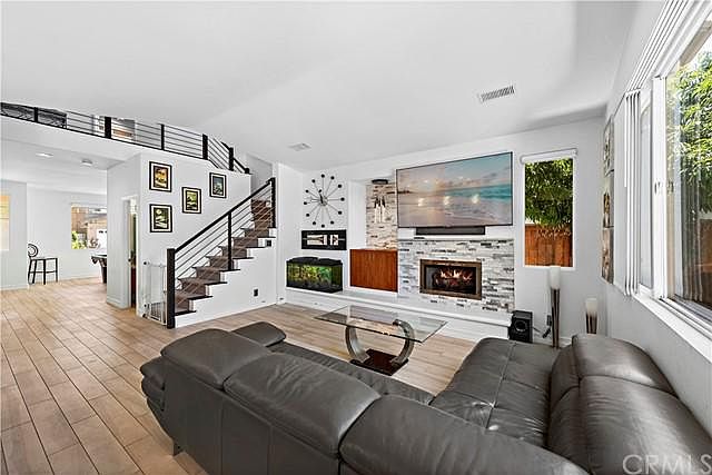Immaculate view home with a ton of upgrades. This home has it all. Newer remodeled kitchen with European style cabinets. Newer stainless steel appliances including refrigerator and two wine coolers. Stylish stair banister. Custom built-in throughout. Custom fireplace in family room. Newer double pane windows and sliders throughout. Newer upgraded floors throughout( Luxury tile on the first floor and hardwood on the second floor). Travertine floors in both bathrooms. Remodeled master shower with custom enclosure. Two tone paint colors throughout. Newer exterior paint. Newer heating and air conditioning. Two sets of balcony (one in the front of the home and the second off master suite with panoramic city lights views). Inside laundry room is located on the second floor including washer and dryer. PAID OFF SOLAR. A beautiful place to call home. Association offers pool, spa, sport courts, picnic area and much more.
