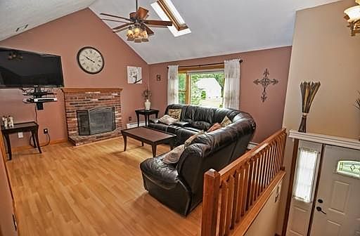 An abundance of luxury without the price tag! Welcome home to this overly spacious cathedral ceiling home. Centered by a warming fireplace this home epitomizes the open concept. Large, eat in kitchen, complimented by newer appliances and easy access to your deck, overlooking your perfect back yard! Oversized rooms, a Hollywood style bath and the ideal guest set up in the finished basement (including additional full bath) offers extra space with versatility for all of your family and extra spacing needs. Enjoy outdoor amenities of a fenced in yard and a neighborhood perfect for bike riding or fall foliage strolls all while appreciating the convenient access to all local amenities. Don't overlook value adds of central air, youthful major systems, new hot water heater, new carpeting and aesthetic preferences. A logical investment and a great place to call home!