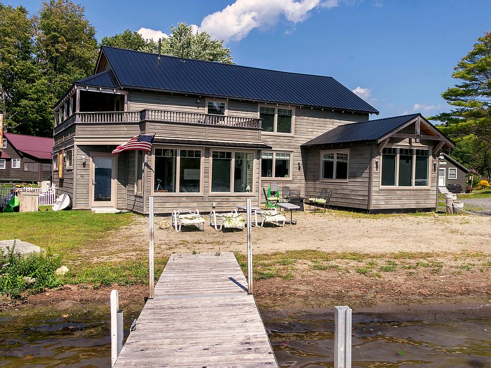 Lake life in the summer, skiing and snowmobiling in the winter, and the delight of all Maine's seasons shine in this year' round waterfront home. Located in popular Belgrade Lakes Region on North Pond, this pristine 3 bedroom, 2 1/2 bath lake house checks all the boxes. A sandy beach awaits steps from your door and panoramic water views abound. Built in 2017 this home pairs modern features and rustic charm. Open layout anchored by a great room with whitewashed woodwork and exposed beams, propane fireplace/stove, contemporary kitchen, laminate flooring, and a dining area where family & friends will gather. Around the corner find a cozy sunroom with stellar views, laundry and 1/2 bath. The handsome light-filled staircase leads to a family room w/vaulted ceiling, primary bedroom w/en suite bath, 2 guest bedrooms, guest bath, and access to the wrap-around deck where mountain views and amazing sunsets will be fully enjoyed. Outdoor find a covered patio with gas fireplace, private dock, outbuilding game room/rec space, boat mooring and storage shed. Lovely in all season, whether swimming and boating, skiing and snowmobiling, or enjoying nature's colors in fall or spring, this lake house property is A+ in every way. Easily escape to your own slice of Maine paradise located just 20 min. from highway and within an hour's drive of Sugarloaf, Freeport, Bangor, or the Maine coast. This stunning home is being sold fully furnished and ready for you to enjoy.
