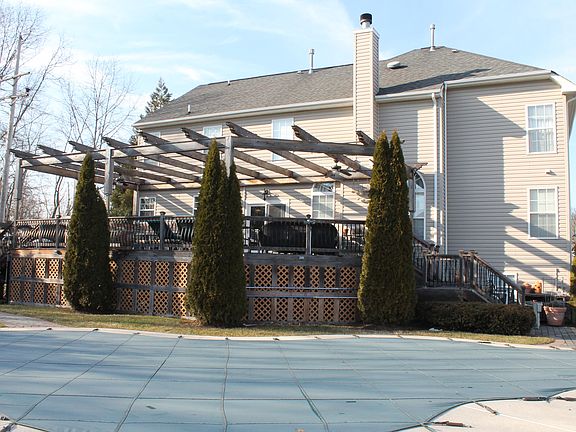 Wow! Fantastic curb appeal with this spectacular colonial complete with finished basement and pool. This special home has had $250k in additions and upgrades to the inside and out since the home was built 15 years ago. From the moment you approach the impressive double columned front until you enter you will appreciate all the amazing care and details. Extra molding thoughout, Freshly painted with today's colors and refinished hardwood floors. Soarng 2 story entry foyer with split staircase leads to 2 story family with wood-burning fireplace. Chef's delight kitchen with center island, double ovens, stainless steel appliances, decorative tile/stone backsplash and walk-in pantry leads to deck. Powder room had been redone. Library on first floor and updated laundry room complete the first floor. Upstairs features a generous sized master suite with sitting room, huge walk-in closet and spa-like bath with soaking tub, shower and double sinks. Be prepared to be amazed with the stunning finished basement with a full bath unlike anything you've ever seen in a lower level. This carefully planned finished lower level fabulously extends your living space. It's open concept has half walls so you can create your own vision for whatever are your needs. Wired for sound with speakers for a media center, recreation space, office area, relaxation. Wait! There's more. The home's outdoor creation is a true lifestyle experience not to be missed. In-gound 35' pool with diving board and concrete patio surround. Large sturdy Brazilian wood (Ipe) deck with arbor trellis, 3 ceiling fans/lights, iron railings and outdoor kitchen. The kitchen has grill, burners, refrigeratior, sink and storage. Plus, there's relaxing paver patio with its own arbor trellis. The premium lot has a privacy screen of trees and the exterior has in-ground sprinklers, hardscaping, professional landscaping,beautiful trees and bushes. Don't miss this exceptional fine executive property. Great for entertaining. Lovely for relaxation. Close to transportation and highways.