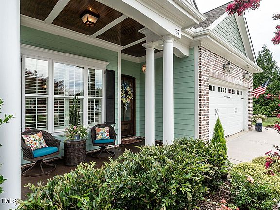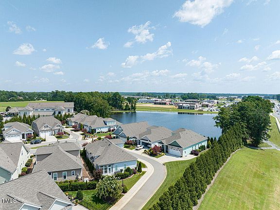 LUXURY RESORT LIVING ON THE WATER! Fall in love with this custom-built cottage in gated Sweetgrass, Clayton's premier Active Adult community, located in amenity-rich Flowers Plantation. Built by Kirkwood Builders, Clayton's Luxury Builder & touting sensational water views, this 3 BDR/2.5 BA with Bonus, Sunroom (220sf) & tons of storage has 2521sf! Loaded with upgrades, this Ranch home features a wide open Floorplan; Chef's Kitchen with French country cabinetry to ceiling, gorgeous granite, gas stove, potfiller, drawer microwave, large center island & eat-at bar; 2 story Family Room has 2 tiers of windows & gas fireplace; Stunning Sunroom has brick fireplace & relaxing water views (Sunroom was a 3 Season Room, windows & HVAC added without permit); All Bedrooms on Main; Large Primary Retreat has trey ceiling & Spa Bath with dual vanities, roll-in shower & custom closet; Secondary Bedrooms share a Bath; Amazing Laundry Room has sink, folding area & drying rack; Big Bonus upstairs with small conditioned room with shelving & add'l closet & 2 huge storage areas (611sf). Enjoy drinks on the Patio overlooking lake in your fenced backyard! Yards maintained by HOA! Upgrades include plantation shutters, hand-scraped engineered hardwoods, custom trim everywhere, granite in baths, central vac, tankless water heater, magnifcent landscaping, add'l parking pad... Ideally located, just steps from YMCA, walking trails around Lake, short golf cart ride to the Harris Teeter, CVS, Urgent Care, Dentist, Restaurants, Salons, Publix & more! Refrigerator, Washer, Dryer & Mounted TVs to convey!