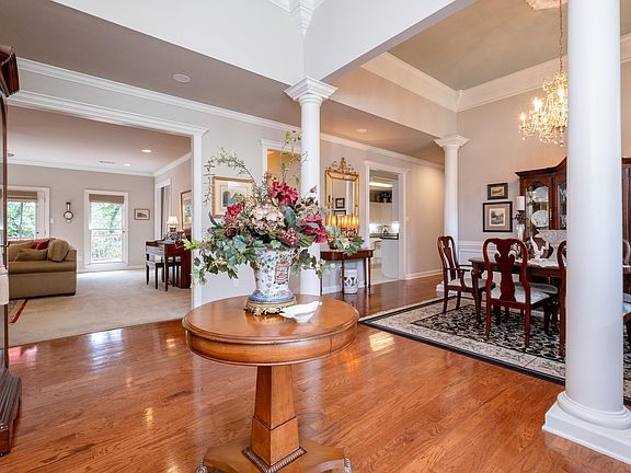 Lovely traditional family home on beautifully landscaped lot backing to green space. Awesome floor plan that lives like a one level with tall ceilings, HDWD floors and plenty of natural light, there is wonderful space for entertaining. Spacious eat-in kitchen with slab granite, center island & Stainless appliances. Formal Living, Dining & Den opening to 2 decks with seating overlooking yard. Huge Primary suite with gas log FP sitting area, extra large spa bath & closet. Three nice sized guest bedrooms share hall bath as well as half bath. Lower level with 5th bedroom en-suite, another living area and access to lower deck and backyard. Three car side load garage. Great storage. New HVAC, New Hot Water Heater, New Paint! Come See!