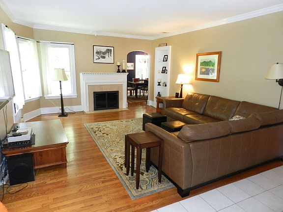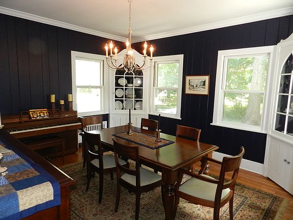 Cap Cod charm with modern appeal! Porch & Dutch Door entry. High ceilings throughout 1st. LR w/HW floor, marble FP w/wood mantel, built-in bookshelf. Formal DR w/paneled walls, built-in china cabs.Stunning new Kitchen w/custom wood cabs w/pull-outs, stainless apps, soapstone counters, center island, pantry, octagonal breakfast area w/banquette seating & glass doors to deck. First Floor Master w/HW floor, lots of light. 2nd BR w/wood floor. Bath with granite-topped vanity, CT walls/floor & laundry area w/closets. 2 2nd Floor BRs with angled ceilings, deep closets, wall-to-wall. Full 2nd floor Bath w/shower-over-tub. Finished Basement Rec Room w/CT floor, recessed lighting, wet Bar w/fridge. Large storage area & walk-out to yard. Fenced, level yard w/2 Tier deck, 2 sheds, bocce/horseshoe court, Hot Tub.