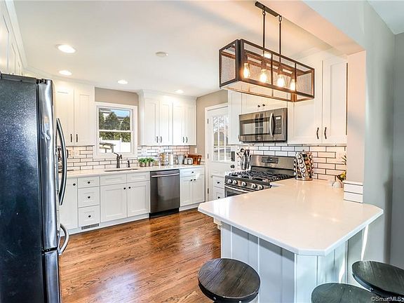 **WEST SHORE, TURN KEY,WATER-VIEW** Do not miss this opportunity to open your eyes every morning & see the water from your bed in the Master Suite! Multiple additional views from around the house including the front porch, living room & back yard! Enjoy the water community life with sea breezes, fishing, boating & beaches among many other activities. This charming, totally renovated Colonial sits on a quiet dead-end street. The front wraparound L-shaped porch is great for relaxing on your rocking chair. The main level welcomes you into the living room which is open to the sleek cook's kitchen with upgraded stainless appliances, quartz countertops, breakfast bar. The formal dining room opens to the family room w brand new French doors to the back deck. Upstairs sits the Master Suite which includes custom barn doors & a stunning marble master bath w double sinks. The additional 2 bedrooms & full bath complete the upper level. The backyard is level, fully fenced, private yard with gazebo, fire-pit, shed, & 16'x19' deck - ready for fun & memories. Energy efficient & cost effective: 98% efficient 2017 gas furnace 7.5kW solar panels are in place. Central air. Smart thermostats. Smoke/carbon detectors connected to alarm system for safety. This home is a total creampuff: all newer mechanicals, stylishly renovated, meticulously kept & clean = nothing to do but unpack! I95, Merritt, schools & shopping within minutes. NYC = 1.5 hour drive or train from West Haven's young train station.