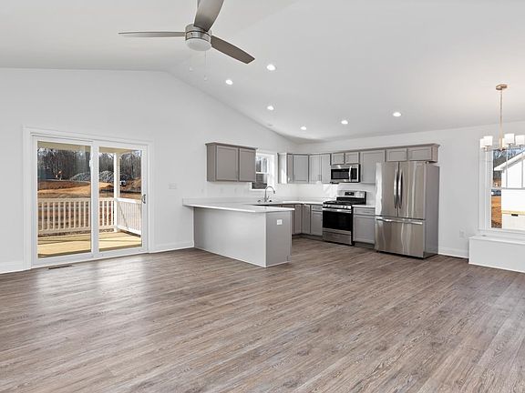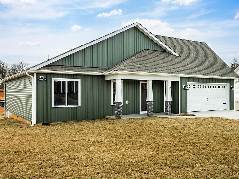 This one is sold but others are available. Popular QUEEN floor plan built by Oaktree Builders located in the Oakbridge Community of Bridgeport in Augusta County is just what you have been looking for. This spacious one level living home offers an open concept kitchen, dining and living room, large master suite, amazing master bath with dual vanities and rear covered deck with mountain views. This one even has a custom built in dining banquette seating with storage and fireplace. If you would like to build your own, choose from the numerous lots and floor plans available starting at $393,900 and ask your agent about the incentive for custom builds.
