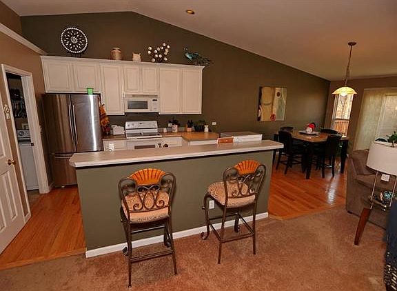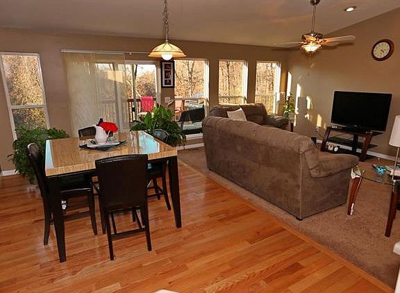Beautiful vaulted great room ranch with walk out lower level. This home features 3 bedrooms and 3 full baths. Kitchen has hardwood floors, white cabinets with breakfast bar and adjacent breakfast room. Sliding glass doors to large deck over looks common ground and backs to woods. Finished lower level has large 28X21 family/rec room with walk out to covered patio, large 3rd bedroom and full bath. Great location near hwy 70 and hwy 40 for easy access to all your shopping, work and entertainment needs. Must see!