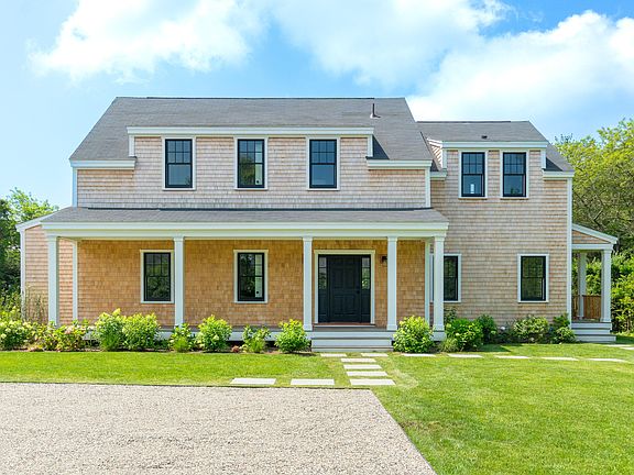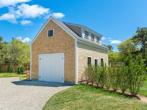 Located just around the corner from numerous rising stars on the list of go-to Nantucket spots, this newly constructed six-bedroom home is brought to life by J5 Development with custom interiors by Hellenic Designs and features extensive amenities inside and out. Ensuite bedrooms, three laundry facilities, a separate appliance pantry, and an oversized mudroom top a long list of interior luxuries offered by this home. In the spacious backyard, a covered porch leading to the pool and cabana with a bluestone patio further enhances the property. Situated moments from markets such as Pip and Anchor and Nantucket Meat & Fish, as well as fitness and recreational spots like SUPTA Yoga, Nantucket Fitness, and the 100+ acres of State Forest, you are never far from convenience and summer fun. First Floor Arriving in the home from the ample front porch, stairways are on the left with powder room and coat closet on the right as you pass through to enter the gorgeous open plan living overlooking the pool. Flanked by 3 sets of sliding doors out to the pool area, the bright living room is punctuated by an oak wrapped inset fireplace on one end and the well-appointed kitchen complete with large island on the other. Separating the two areas is a show-stopping double island that serves as a high-top dining area. Off one side of the kitchen is the side entrance to the house along with the first of 3 laundry areas (house will be delivered with 2 sets installed, 1st and 2nd floor). The other side of the kitchen opens to charming room with vaulted ceiling and sliding doors to pool (option to use as a sitting or dining room), complete with a 2nd inset fireplace and option to position TV above. Off the main entrance to your left is the primary first floor bedroom suite with paneled doors, sconces flanking the king bed space, equipped for TV on wall opposite and large walk-in closet. This bedroom's spacious double vanity bathroom with private WC and walk-in shower also features electric heated tiles. This beautiful home features oak floors throughout as well as radiant heat floors and tasteful shiplap wall detailing. Second Floor The second floor of the home features 3 en suite bedrooms, each with beautiful wood work detailing and walk-in showers. The primary second floor bedroom features a larger floor plan and larger bathroom with double vanity area as well as electric heated tiles. The 2nd laundry area is on this floor and will be installed for home delivery. Generous linen closet located next to laundry. Basement Arriving downstairs from the main entry is another large pantry area well-equipped for entertaining which opens onto the oversized rec room with exterior egress to full stairway. This floor features two en suite bedrooms with walk-in showers as well. The 3rd laundry area is located on this level as well as large utility room. Other Structures Oversized garage (468 sq ft). Pool Cabana (155 sq ft) with full foundation and full set of stairs to dry storage beneath, perfect for storing outdoor patio furniture.