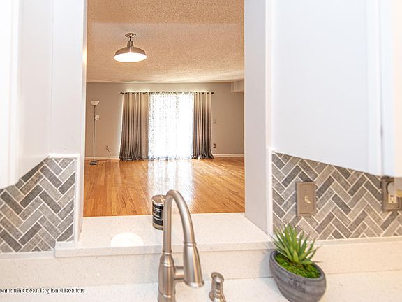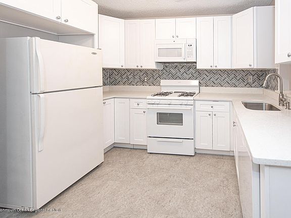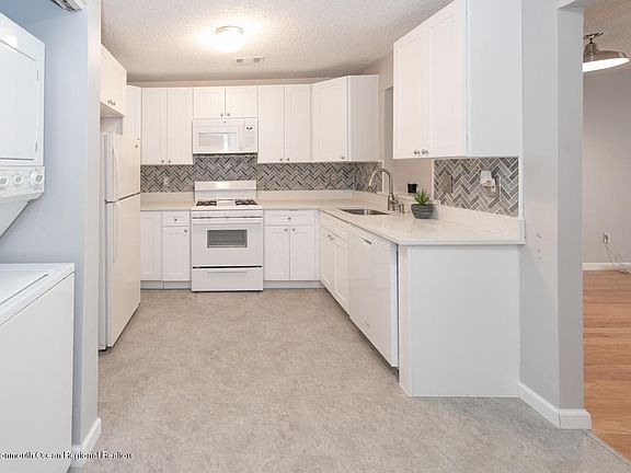 Freehold Twp. Desirable Raintree lower level 2 bed 2 bath Magnolia model condo. Eat in Kitchen has been fully renovated w/ granite counters and glass backsplash. Stackable washer and dryer. Dining room/living room combo. w/ sliders that lead to rear patio and storage unit. Hardwood floors and freshly painted. 2 full bathrooms have upgraded toilets and vanities. . Gated community w/walking paths, gm, pool, basketball and tennis. Walk to major shopping plaza.. NYC bus on corner. Close to malls and restaurants.