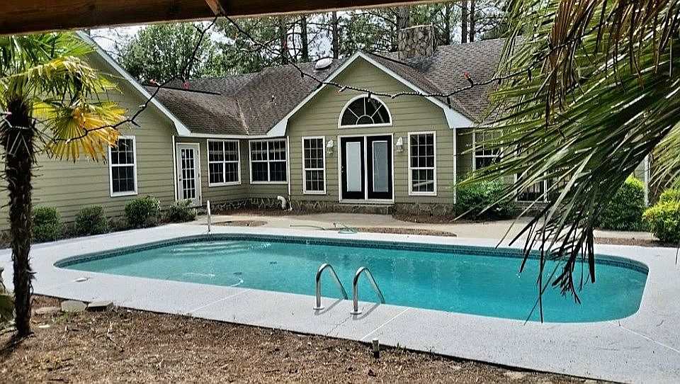 Looking for quiet country living, that's just minutes to town? Here it is! 3 Bedroom, 2 Bath home (with Bonus Room) situated on 3 beautiful acres. This home features a split floor plan. When you enter this charming home through the mudroom, you find a large gourmet kitchen with custom cabinets galore, and a wet bar, perfect area for entertaining, as it flows into the dining room, formal living room and charming family room, which is the heart of the home. The family room boasts a wood burning, brick floor-to-ceiling fireplace as the focal pointe, with lots of natural light from the large windows and french doors overlooking the beautiful pool. Looking for some quite time and the perfect place to relax, there is a large private primary bedroom with ensuite, double vanity, walk-in shower, and oversized soaking tub, attached to a room perfect for a nursery, office or library. The other side of the home are the additional bedrooms, second bathroom, mudroom, oversized laundry and bonus room. The bonus room area is perfect for a playroom/game room, or could be turned into a separate in-law or teen suite. Upstairs there is one room perfect for an office, or possibly a fourth bedroom. Outside you will find 6 chain link/concrete dog kennels, a grain bin that could be converted into additional entertaining area, a large yard perfect of kids and pets to play, and a beautiful gunite pool, with diving board, tiki hut and screened porch, a summertime oasis perfect for your enjoyment and tons of family fun! Sold "AS-IS" (Furnishing are negotiable with sale). For Sale by Owner. Direct inquiries to 478-804-1466. glendajparker@yahoo.com
