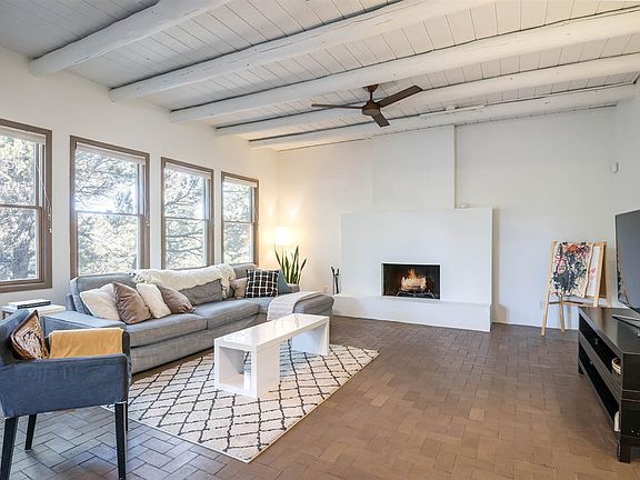 Do you enjoy living among the pinon, fresh air and star filled night skies but, want all the conveniences of being off a paved road and only minutes to the Plaza? Then come and enjoy the comfort this home has to offer with its large open floor plan, great formal living room, and the nuance of the contemporary touches in the kitchen and bath rooms. Skylights and walls of windows bring in an abundance of natural light. And if that wasn't enough it sits on 2.7 + -acres with gated access!