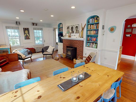 This enchanting cape on a lush .34 acres sits in a highly desired in-town neighborhood, south-facing and sun-filled, it is just a stone's throw to Orono Schools, UMaine campus, Orono Land Trust, & Orono Village's shops & restaurants! The floor plan delivers practical elegance, charm and comfort with a flow from the front foyer to a spacious living room with a wood burning stove, accented by arched built-in bookcases. You'll fall in love with the glorious 3-season sunroom flooded with sunlight opening to a generous back deck which overlooks the private backyard with raised beds, ready for your gardens. The galley style kitchen has practical storage space and leads to a cozy breakfast nook. A half-bathroom and mudroom porch area complete the first floor. Upstairs boasts an updated full bathroom with tiled bath/shower, two spacious guest bedrooms, and a primary bedroom with ample closest space and stairs to a fantastic third-floor bonus room, perfect for the home office/studio of your dreams! A one-car attached garage and a full basement with laundry, guest bathroom, and family room/playroom with brick fireplace complete this charming home.