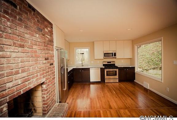 -Beautifully remodeled mid-century modern rancher in desirable North Asheville neighborhood. Interior features an open floor plan with two sided fireplace and mountain views from the living room. The kitchen has marble counter tops, stainless steel appliances and is perfect for entertaining! The gleaming hardwood floors and modern touches are a must see. Everything is new, landscaping is done. Just move in and enjoy the view!