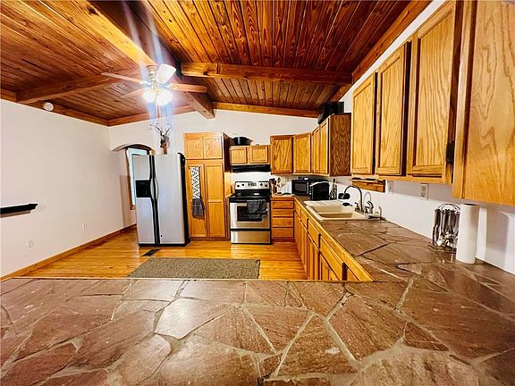 This cabin-style home sitting on 1.43 acres is what you have been waiting for! This home boasts 2 bedrooms, 1 bathroom, and 1 office space (that could be a 3rd bedroom option) is giving all the country charm with wood floors, wood cathedral ceilings throughout, and a front and back covered porch running the full length of the home. Outside features include a covered detached carport and/or area to park your boat, utility vehicle, etc. with additional storage attached. There is also a 10X20 metal building/workshop for plenty of additional storage. This home is close to hunting and fishing spots at Kincaid and Cotile Lakes. This home would be the perfect starter home, home to downsize, or investment property to add to your portfolio. Let's schedule your showings soon.