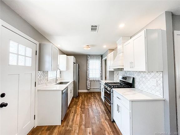Highest and best offer deadline is Tuesday 4/12 at 6 pm. Wow , just wow! Welcome home to this stunning one level ranch in a HIGHLY desired area! So much love & quality has gone into this home. Walk in the front floor to find yourself in the peaceful sun room, as you further enter this FULLY redone home you will be blown away! COMPLETELY BRAND NEW KITCHEN with stainless steel appliances ,gas stove, BEAUTIFUL Calcatta Quartz counter tops, CUSTOM SHIP LAP hood vent, stunning scaled tiled backsplash, and under mount sink. New luxury vinyl flooring in the kitchen, dining and living room area! 2 bedrooms and 2 FULL bathrooms. BOTH bathrooms are totally REDONE with NEW FLOORING, NEW 9ft Quartz double vanity, tiled shower & glass door. The 2nd bathroom has a custom corner tiled shower! BRAND NEW WINDOWS throughout, BRAND NEW vinyl siding, NEW Pioneer CENTRAL ac/heating system, a new super spacious 20 x 16 composite back deck, and new 100 amp electrical panel box! Also a newer electrical hybrid hot water tank. This home also features an attached garage and the large heated basement AND has a ROOT cellar! Recessed lighting and decor outlets with nightlights & usb ports throughout the entire home! Simply stunning!!!