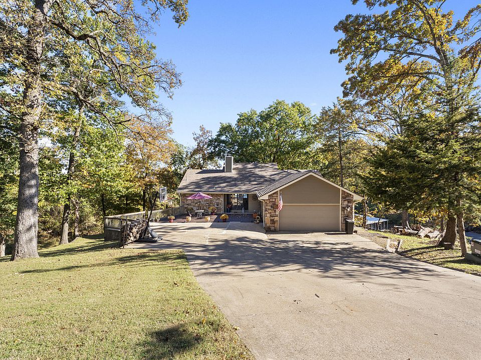 This stunning lakefront property offers ~140 feet of pristine shoreline and the perfect blend of comfort, versatility, and recreation. Enjoy lake living at its finest with a two-slip dock, measuring 14x24 and 12x28 with an extended roofline, plus enclosed dock storage that could easily be converted into a cozy fish house. The spacious swim deck features a convenient Wet Steps ladder, making it ideal for relaxing summer days on the water. Nestled on two lots totaling just over half an acre, this home sits in a short-term rental-friendly neighborhood, offering excellent investment potential. The downstairs area can function as a separate rental unit or private guest suite, complete with a living room, bathroom, kitchenette, two bedrooms an office and covered patio access. Upstairs, you'll find an open-concept design with a split floor plan, providing both privacy and comfort. In total, the home includes 4 bedrooms, an office, 3 full bathrooms, and a versatile flex room, as well as inviting upper and lower decks perfect for taking in serene lake views. This property offers a newer roof, pex water lines, updated kitchen including appliances, quartz & granite countertops and much more. Whether you're seeking a full-time residence, a vacation retreat, or a profitable rental property, this lakefront gem delivers it all. Seller is related to Listing Agent.