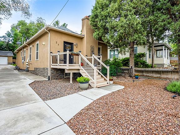 Perfect for entertaining, this TURNKEY property is ideal for owner occupants and investors alike with two separate entrances and R-2 zoning. The lower level has been a successful short term rental for 4+ years! Convenient location within walking distance to the Ivywild school and just minutes from I-25 and the shops at Creekwalk. Step up to the main level which features 9 foot ceilings, recessed lights, updated fixtures and NEW luxury vinyl plank floors. Cozy up to the brick fireplace in the living area or make your way through the open floor plan to the modern luxurious kitchen. The kitchen has a NEW granite peninsula with butcher block perimeter countertops, custom backsplash, stainless steel appliances, maple cabinetry and hammered nickel light fixtures. There is a large pantry and a dry bar off of the kitchen. The powder room features quartz countertops. Enjoy two main level bedrooms including a luxury master suite with ensuite bathroom featuring a dual vanity with pendant lighting, custom tile work, barn door to water closet, heated tile floors, jetted bathtub and shower with floor to ceiling glass tile and river rock accents. Beyond the master bathroom lies a large dressing room with built in organizers and drawers. The basement has a large recreation room featuring a brick fireplace and an expansive wet bar which mirrors the finish of the main level kitchen and includes a wine refrigerator. There are two additional spacious bedrooms on the lower level and a well appointed bathroom with custom tile work and a modern vanity. There is a laundry room with Samsung washer and dryer. Window evaporative cooling unit and air conditioning units included. Radon mitigation system in basement. Step outside and enjoy the low maintenance xeriscaped front yard, NEW front porch, NEW concrete driveway, patios and a fire pit. This yard is an entertainers dream! New exterior paint and a detached two car garage. Property is available fully furnished with a few exceptions.