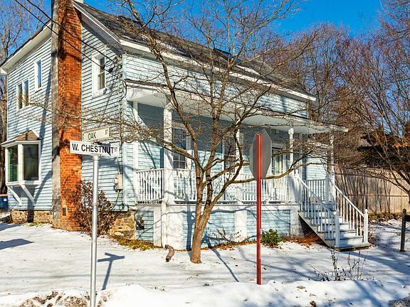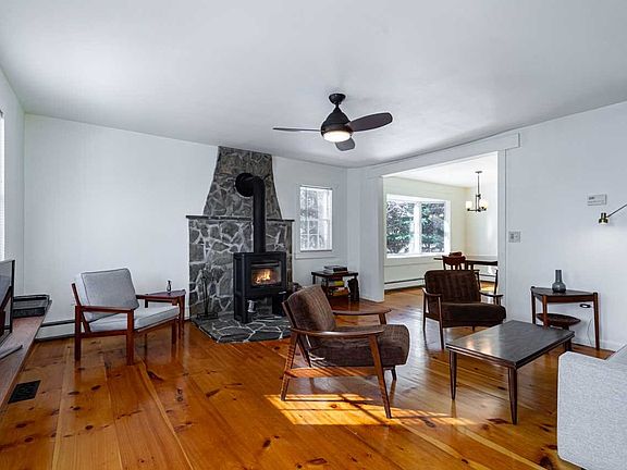 Charming Colonial located just two blocks from the center of the historic Rhinebeck Village. The updated interior features neutral tones and an open floor plan that create an ambiance of tranquility. Ample natural light flows through the kitchen and dining area from the bay window where birds buzz outside on the feeders and trees. Crossover from the dining to the living room and relax in front of the beautiful wood stove before passing under the archway leading up the stairs to three more bedrooms, and the second spacious full bath. Outside, in the front of the home there is a rocking chair front porch, in the backyard an expansive bluestone patio and airy well-maintained lawn, perfect for dining and entertaining. A wood fence surrounds the backyard offering a sense of privacy. Access the to 2-car detached garage at the rear of the home through the mudroom entryway.