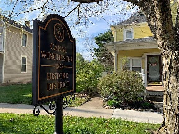 Showings start Friday 4/16/21 at 5 PM. Super cute, Circa 1900's, 4 BR, 1 1/2 BA 2 story home w/full wrap-around front porch & 18' x 20' 1 car detached garage, located in the Historic District of Canal Winchester, right on the parade route & walking distance to local shops and restaurants. Upgrades & extras include some of the original woodwork/hardwood floors, new PVC plumbing, water softener/reverse osmosis system, updated electric, new water heater, new roof in 2020, new kitchen countertops and sink, remodeled laundry room with new vinyl flooring, clean dry cellar/basement and much more. Large fenced yard with shed, concrete patio & huge pine trees! No neighbors behind the home. This is a super cool home, in an awesome location, filled with history! Attention Agents: See ATA remarks.