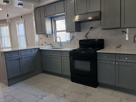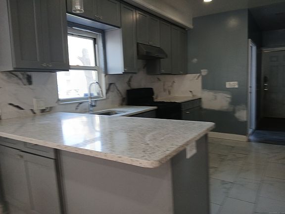 Completely remodeled 3 br. 1st floor apartment. New kitchen with marble floors and counters and newly remodeled bathroom. Hardwood floors throughout. Laundry room with hookups. Dryer is there.