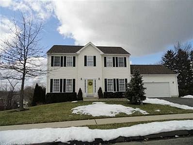 Eastside 7 Room, 3 bedroom , 2 1/2 baths located on a cul-de-sac with all homes being built same year. Kitchen with granite counters, hw floors and stainless steel appliances. The breakfast nook is a great place to have your morning coffee or on the deck overlooking the slopping back yard with an area to put a fire pit or put in an above ground pool (all electrical etc already installed). Te unfinished basement can give you additional living space and has access to a patio in the rear. The house has central and heat on two zones. Plenty of storage space and closets galore. Hot water heater is hybrid and water is almost on demand but is inexpensive to run. State of the art