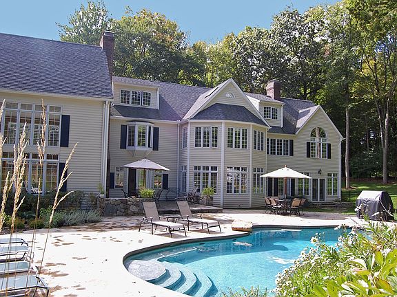 Down a long private driveway off a historic road in Weston, Wampum comes alive with bright spaces and a calm natural beauty outside and in. Walls of windows illuminate the home with soft natural light throughout the day, lighting up your every moment with flair. The vibrant two-story family room shines with warmth, centering on a large fireplace with a grand staircase wrapping up to the beautiful master suite. Outside, relax in your quiet yard, wrapped in lush open space to create a private escape all your own. The beautifully landscaped backyard with a gorgeous pool area and flowering perennial beds provides the perfect place to unwind in secluded style. For more info call Michelle&Company at 203.454.4663