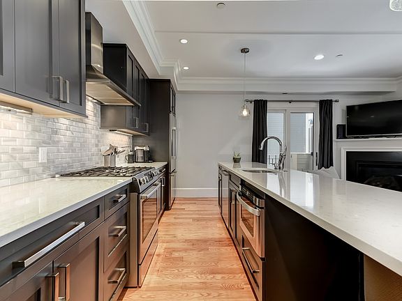 Gorgeous 2nd flr condo w 2 beds/2 baths built in 2016 by prestigious local builder. The scale of this home will delight - wide hallways, high ceilings & lots closets thruout. Sleek, open kitchen-living room-dining room offers quartz counters, SS appliances, 5 burner gas cooktop, under cabinet lighting & hidden trash. LV offers gas fireplace and petite deck plumbed w gas. HUGE Master with TWO walk-in-closets & master bath w double sinks, tiled shower & separate water closet. Second bedroom is also LARGE with big closet! Dedicated laundry closet offers full-sized stacked machines & more shelving/storage. Even more storage in bsmt + private closet outside rear door. ONE GARAGE PARKING AND SECOND PARKING SPOT OUTSIDE. 100% owner occupied association. Enjoy life in The Polish Triangle on the South Boston/Dorchester border. Stroll to: new South Bay movies, shopping, dining; easy access to T, restaurants, highway and Boston proper.