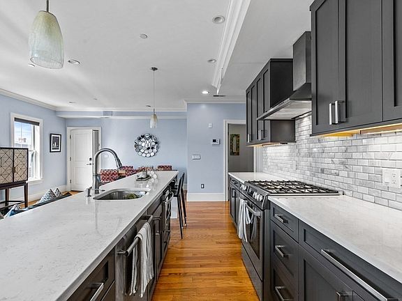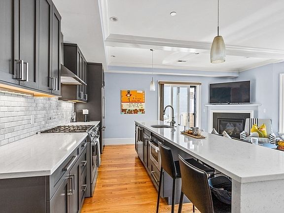 HUGE savings for buyer’s monthly mortgage payment ! Sellers will contribute $8,000 toward a buyer’s “Buy Down Program” from a verified lender . This will significantly reduce monthly payment. Details available. Light-filled contemporary 2 bedroom, 2 bath with private deck and parking . Constructed in 2016, this upper level home is located in the coveted “Polish Triangle”. Features include: an open floor plan , living area w/ gas fireplace , chef’s kitchen with Bosch appliances, quartz countertops and breakfast bar for 4 , separate dining area , king sized primary bedroom w/ en-suite bath, double vanity , walk in closet/ Peleton room, queen sized guest bedroom, guest bath w/ jetted tub, in unit laundry, gleaming hardwood floors, central air, California custom closets , 2 storage units , pet friendly building , 1 covered parking space, low condo fees, and more … Conveniently located to the T , highway, restaurants and shopping . Second parking space available.
