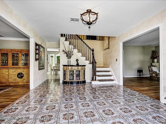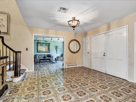This is a coming soon listing. Home cannot be shown until 05 22 21. East Facing 5 bd 2.5 ba expanded Buckingham with brick front in desired Triangle Oaks in Morganville. Impressive open fl plan on 1st fl. Newly finished HW floors and stairs! EI Kitchen opens to lg FR w wood burn brick fireplace to warm winters. Home boasts BR office on 1st fl and 4 very large bedrooms upstairs. Master Bed w master bath and huge closet! Sliders off FR to Florida room exten. that over looks gorgeous huge backyard w paver patio and expan. PVC fence. Much desired HWBB heat to help with dryness in the air! Pull attic stairs. 2 Car Garage and Huge unfinished clean basement. Large garage sized shed.HOME WARRANTY INCL! Sq ft off tax record. Pro Pics coming soon!