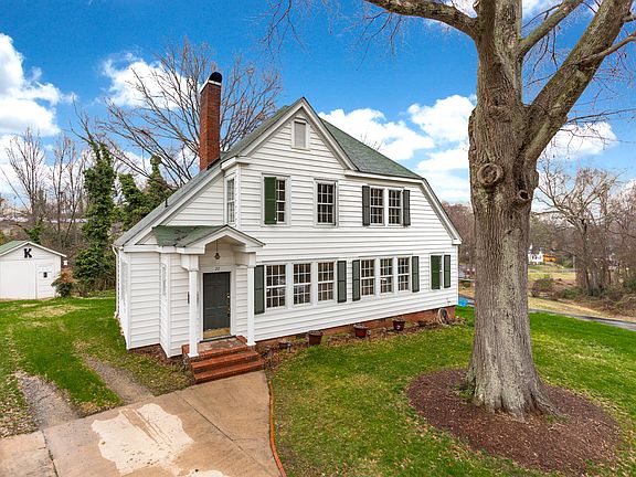 The best of everything: situated on a corner lot near shopping & dining, this beautiful home has a farmhouse feel that's been updated & upgraded! Freshly painted throughout, hardwoods greet and flow throughout the main level into fireside family room with walls of windows with views to both front and back side of home. Adjacent eat in kitchen has beautiful stained glass light fixture, white cabinets & granite counters with breakfast bar, and access to covered back deck. A bedroom on main has a full bath for guests through a sliding barn door, and upstairs, a large master has room for sitting & full ensuite bath. Out back, a storage shed perfect for workshop!