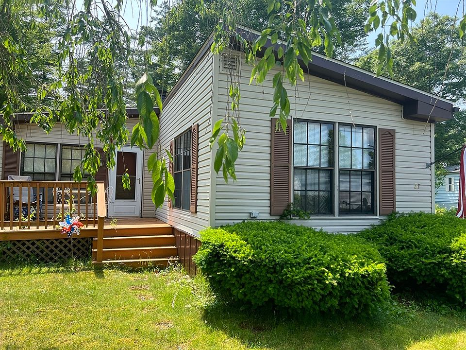 Large DOUBLE WIDE wide with 2 bedrooms , 2 full baths with enclosed porch with heat and AC. in Cranberry Village , Carver, a 55 plus mobile home community. Main bedroom is oversized with a wall of closets.Exterior covered deck with attached ramp for access. Relaxing setting with a large yard and shed. Also attached front deck freshly stained. Island in kitchen with cabinets and chairs. Large kitchen and dining combo approx.11x9.New roof installed in past 4 years.Also new dryer, new stove, new refrigerator, and new hot water tank.within the past 3/years. (Kitchen island chairs remain)Monthly park rent of $530.00. Subject to an application and $150.00 fee for membership. Buyer must complete an application upon acceptance of offer. Setting is serene with the tall pines in the back . Sit on front deck with your morning coffee and listen to the weeping cherry in the breeze. Large yard in back for gardening .Easy access to highways including Rtes 58, 3, 495,195.