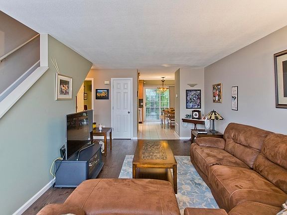 Beautiful townhome in Waters Edge! So much to enjoy about this condo. Let's start with the nicely updated kitchen with granite counters, basketweave glass tile backsplash, tile floor, stainless appliances and sliders to a deck overlooking a serene wooded setting! Spacious living room with hand-scraped wood floors and plenty of light from the large windows. Convenient half bath on this level also. Two generously sized bedrooms on the second floor with ample closet space. Lovely full bath with tile floor and granite top as well. With the colder weather upon us, you will enjoy pulling into your own garage, along with a laundry/utility/storage room. There is even central vac! Great location convenient to shops and Mass. Pike. What are you waiting for?!