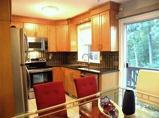 Stunning updated townhome at Waters Edge Condominiums! This condo is perfectly situated with a very private deck and wooded views. Quality updates include a newer maple kitchen with granite counters, tile backsplash, and stainless steel appliances. Large open living room space and a half bath are also located on the main living level. On the second floor are 2 bedrooms and an updated full bath. One car garage and a laundry room and storage area complete this meticulously maintained townhome. Literally nothing to do but move in and enjoy!