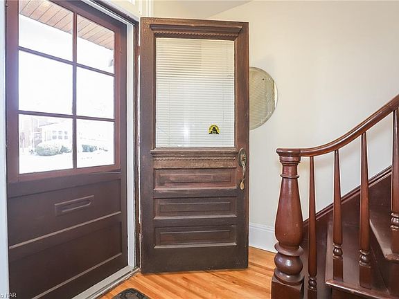 Loaded with character from a time gone by but extensively updated and revitalized to compliment your busy lifestyle, this very special family friendly home is one you do not want to miss. The welcoming covered porch opens to the reception hallway off of which and great for entertaining are the formal living and dining rooms, morning room too - notice the 8 1/2 ft ceilings and classic maple flooring. The Country-style kitchen was reimagined in 2016 with cabinetry and designer decor complimenting the full appliance suite and you'll appreciate the addition of the powder room and laundry closet; walkout to the 16FT X 5FT side porch and back garden and there is a convenient back stairway to the second floor. Opening off the upper level's 9FT X 8.9FT landing you will find three spacious bedrooms. the primary bedroom includes a walk-in closet and walkout to a 16.5FT X 5FT balcony, the second bedroom also has a walk-in closet, and in addition to the third bedroom there is an in-home office or studio; updated main bath of course. Infrastructure updates include rewiring and 100 amp service 2011, kitchen and bathrooms 2016, roof 2016, boiler replacement and installation of on-demand hot water 2019. The home has been pre-inspected and a 2014 dated survey is available. The home is located in the historic area of Thorold it is situated to one side of a 66FT X 132FT lot providing a opportunity to enlarge the home's footprint; the lot is partially fenced and has a detached garage with parking for 4+ vehicles on the concrete driveway. Just getting started, looking for that special storybook home; this century charmer may be the one.