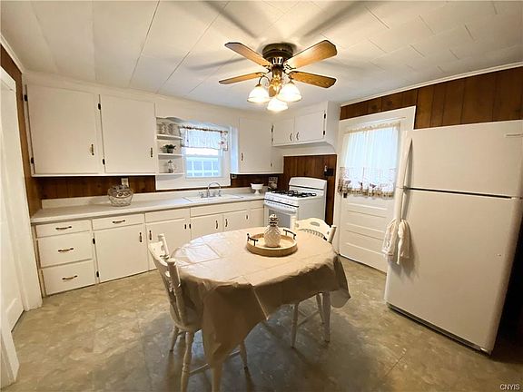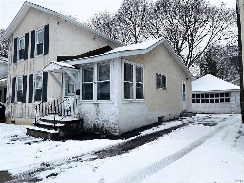 Don't judge a book by its cover. This property is pristine on the inside with 3 bedrooms including 1 first floor bedroom, huge 2 car garage, and large kitchen that opens to the dining room. This house is great for to downsize to, a starter home, or a rental for additional income.